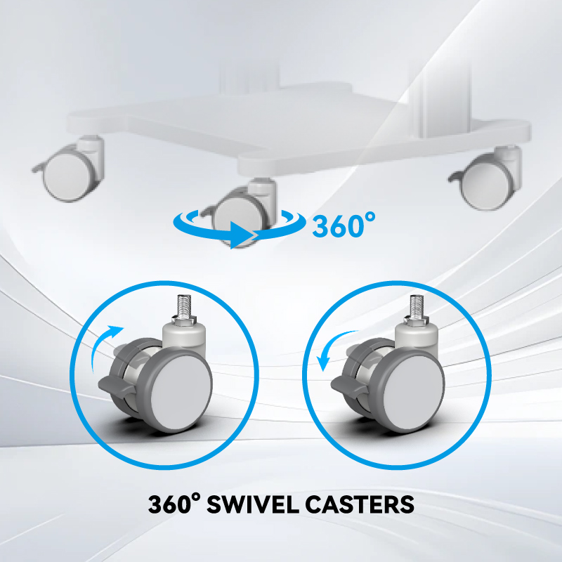 ガススプリングアームは、モニターや医療機器の位置決めを楽に調整できます。空気圧シリンダーにより、スムーズな垂直方向と水平方向の移動が可能で、任意の高さと角度でしっかりと固定できます。これにより、臨床現場における人間工学的な柔軟性とワークフローの効率性が向上し、長時間使用時の負担が軽減されます。