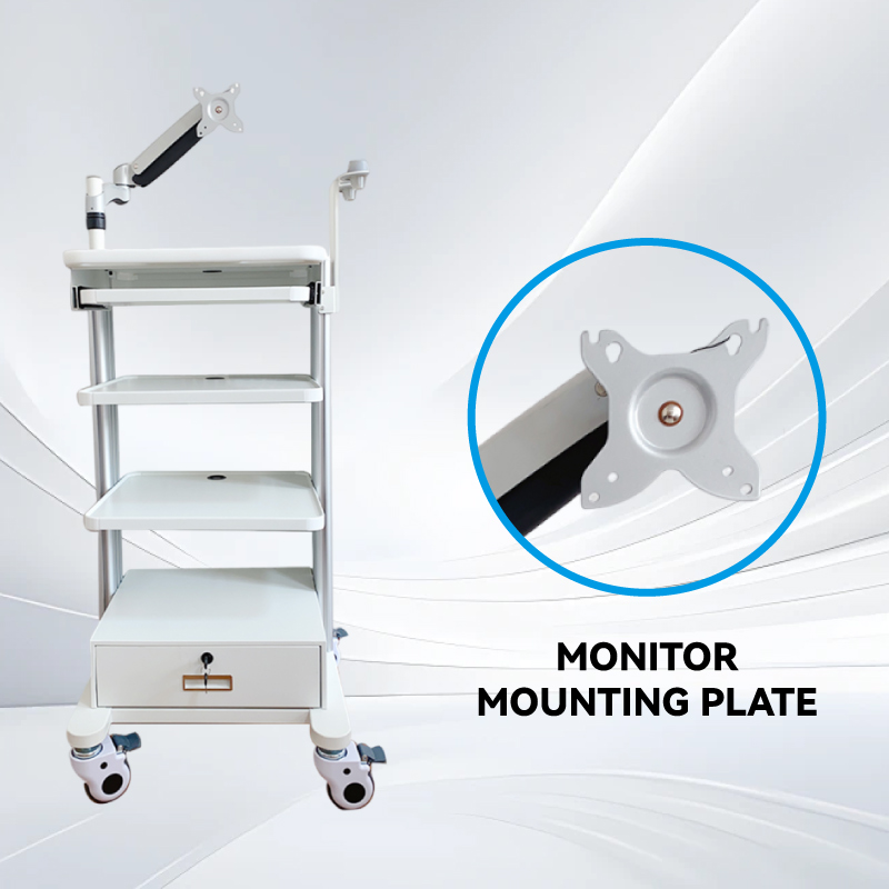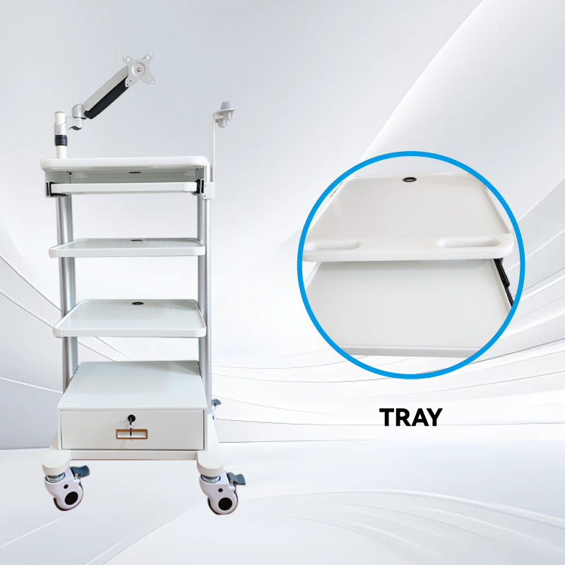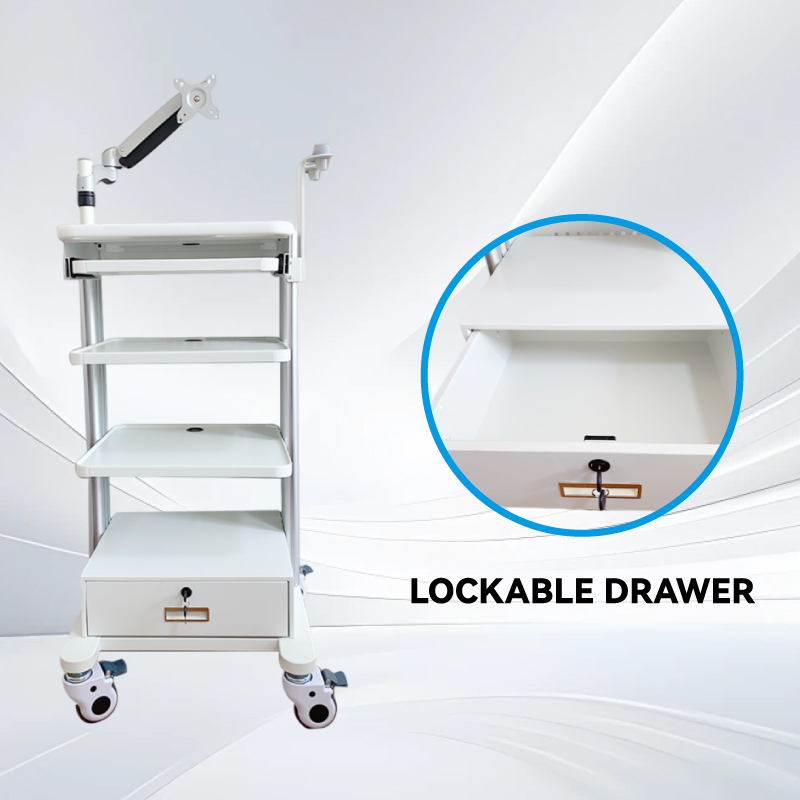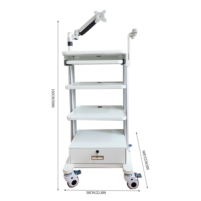 3層トレイ、引き出し、ガスリフトアームを備えた内視鏡トロリー