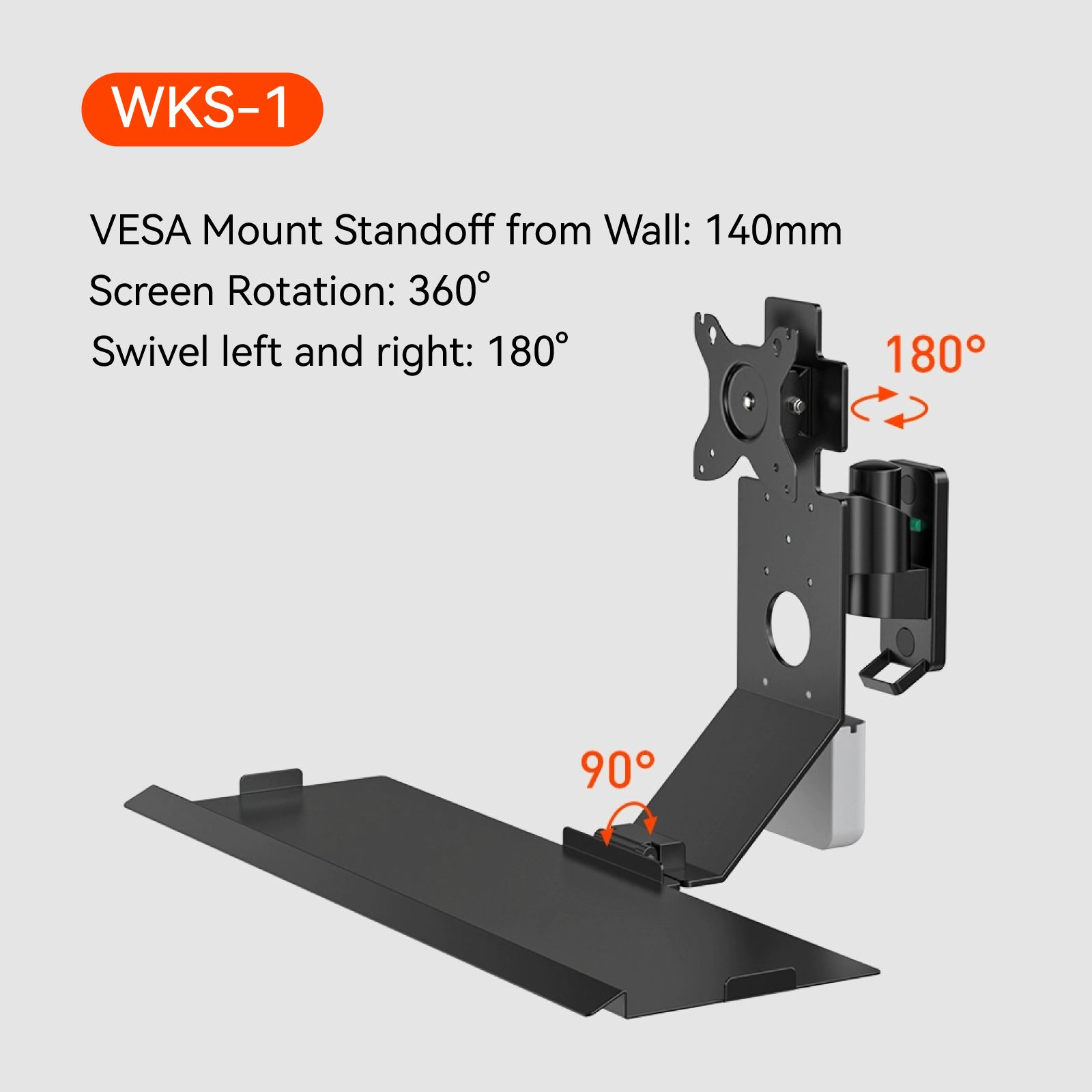 キーボードトレイ付き高耐久性壁掛けモニターアーム
