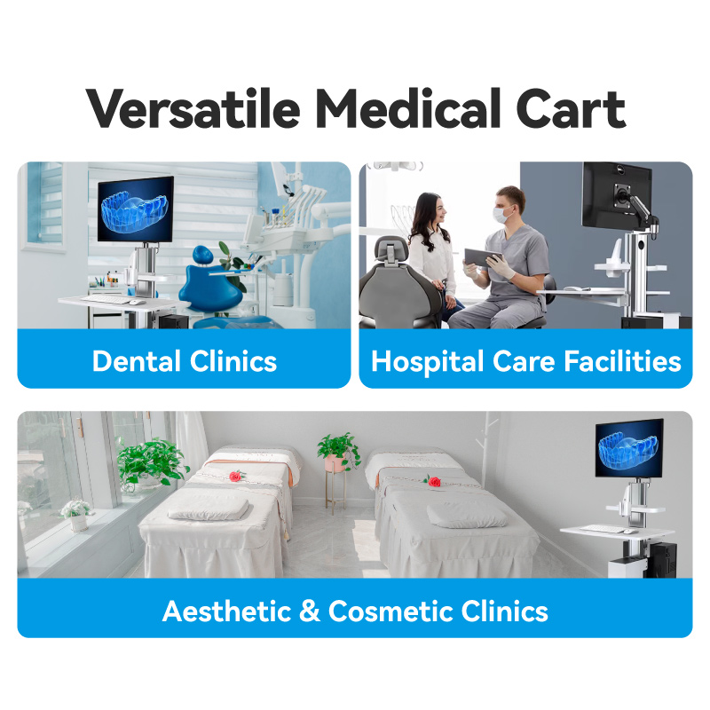 効率的な臨床診断と治療計画のための PC、3D 歯モデル用の高解像度ディスプレイ、キーボードを統合したモバイル歯科カートです。