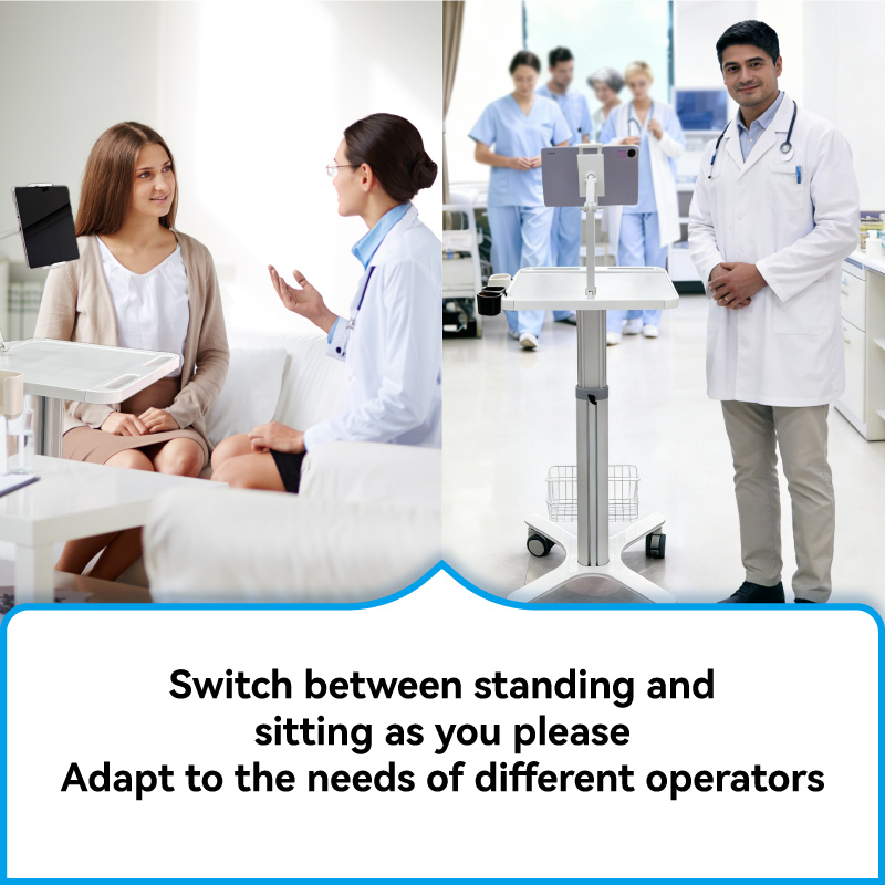 医療およびオフィスでの使用に適した、高さ調節可能なモバイル式ノートパソコンカート