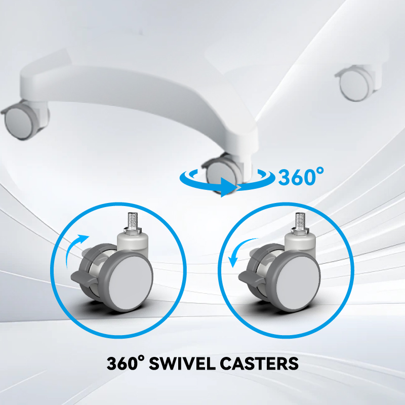 Likaymoのノートパソコンカートは、直径3インチの360°回転式ホイールを4つ備え、足踏みブレーキも備えているため、スムーズな移動と確実な位置決めが可能です。大きなホイールは、敷居やカーペットの段差も楽に乗り越え、クリニック、病院、サロンなど、様々な床材で楽に移動できます。頑丈なフレームと組み合わせることで、使用中も安定した状態を保ち、静止時にはロック付きホイールがしっかりと固定します。